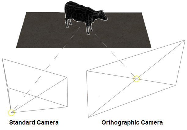 Orthographic translates into a flat FOV cone.
