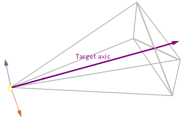 The rotation will occur on the Target axis.