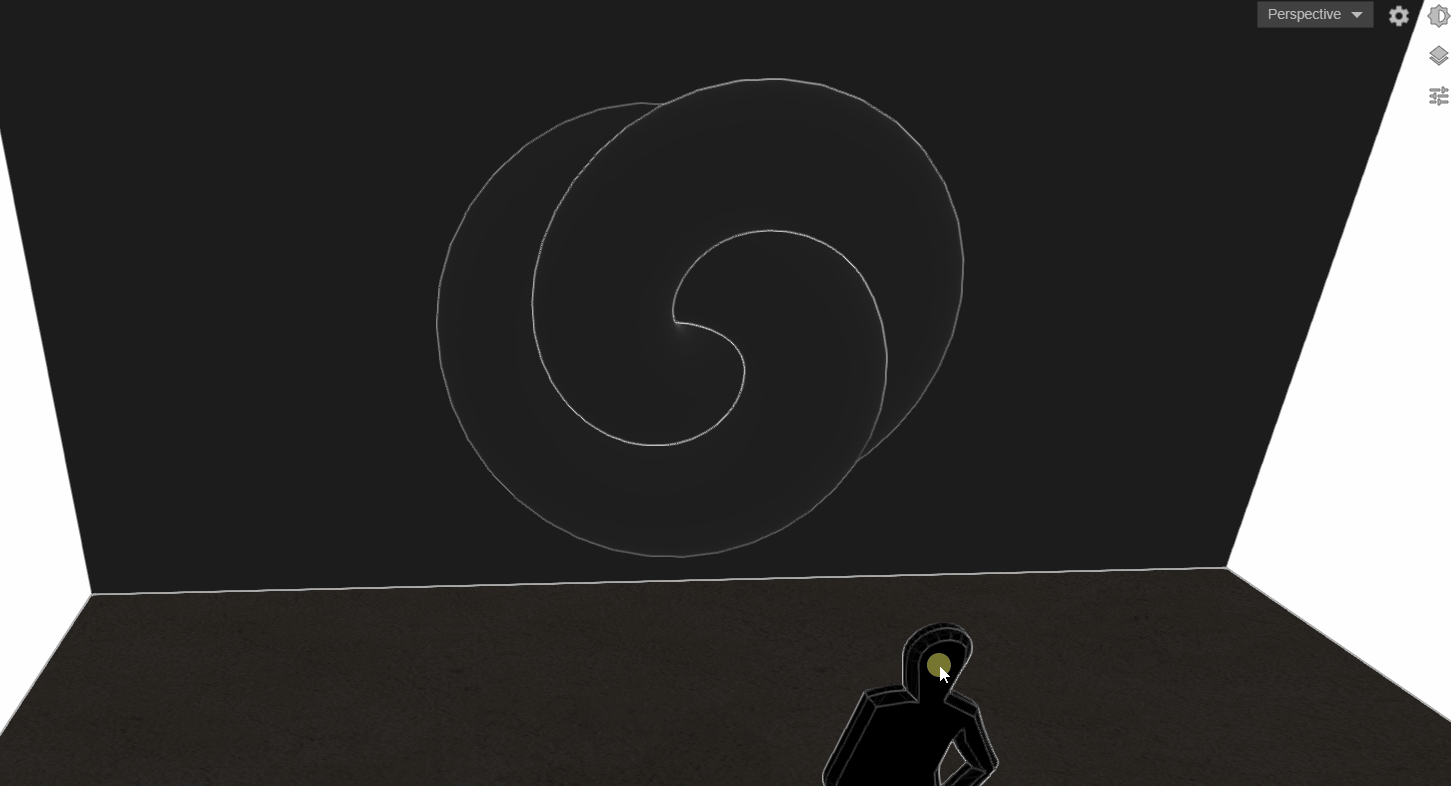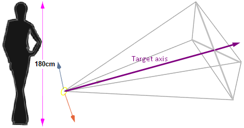 It is also represented in the Scene by a human silhouette 3D mesh (Height= 180cm).