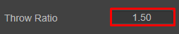 You can also adjust the Throw Ratio in the Properties panel. Just type-in a value, or hold-click on the input box and drag your cursor to adjust.