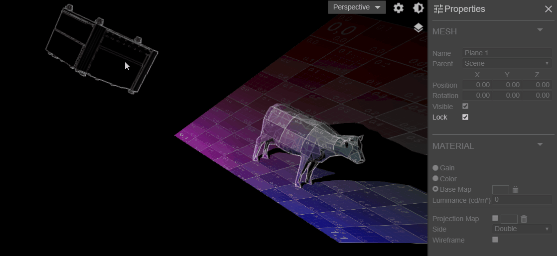 In this example, a projected Texture was applied on the wall and revealed by the Projector in Reverse Mapping mode.