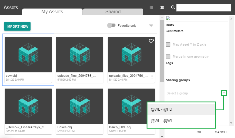 Select an Asset, and add it to any Group Sharing Folder.