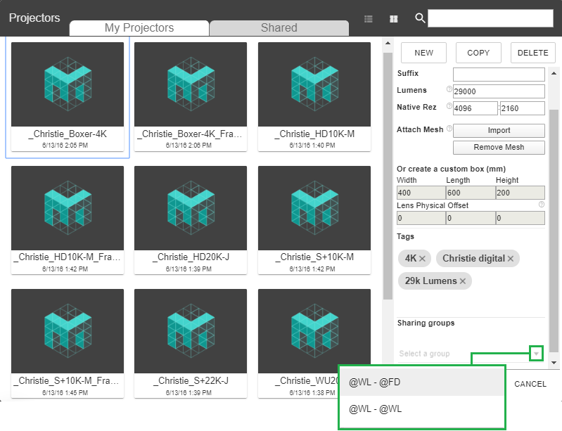 Select a Projector > Add it to any Group Sharing Folder