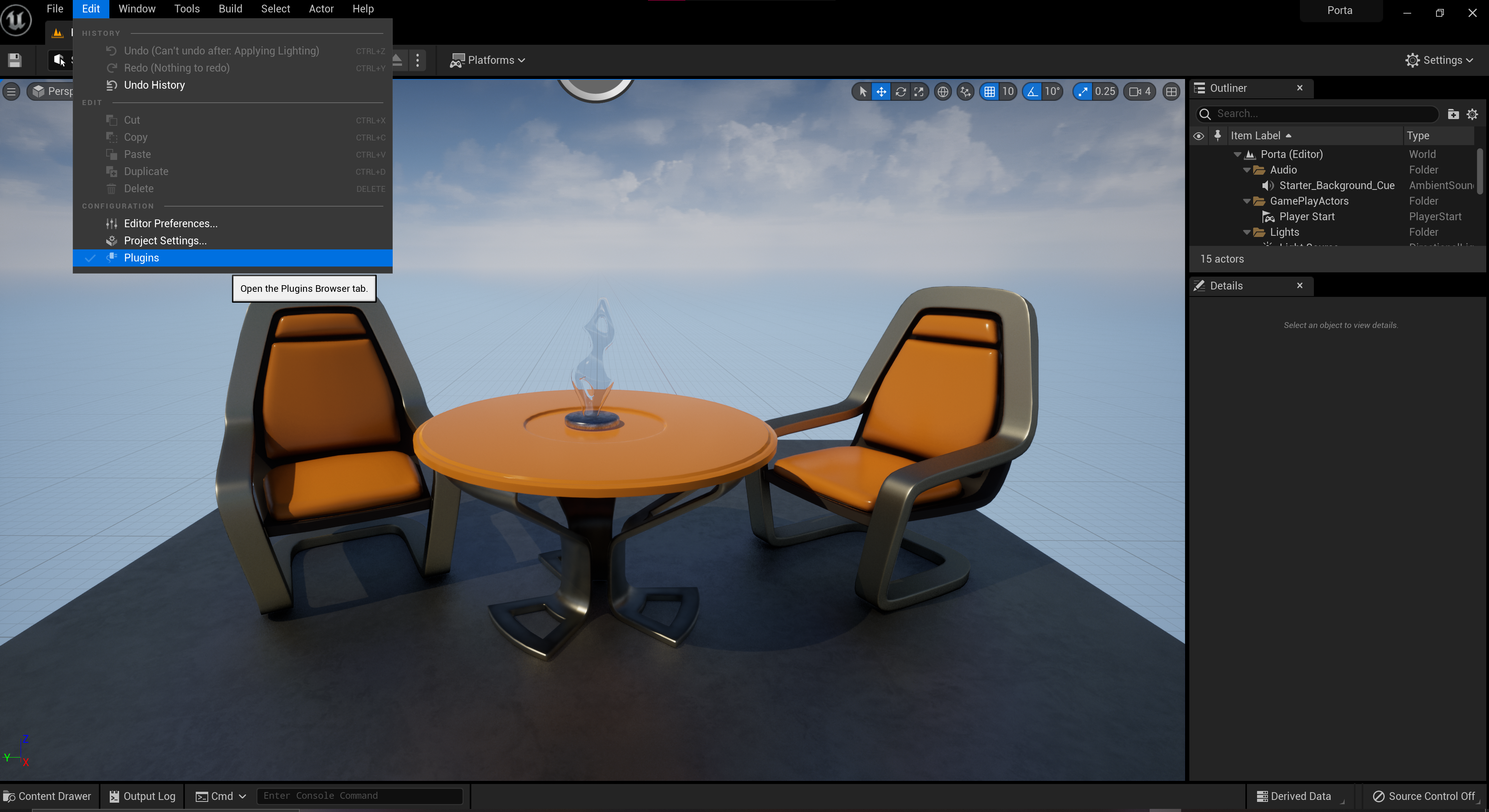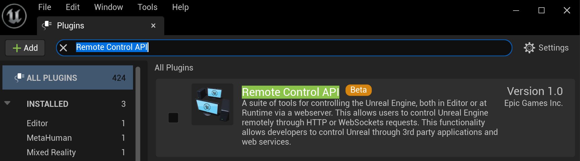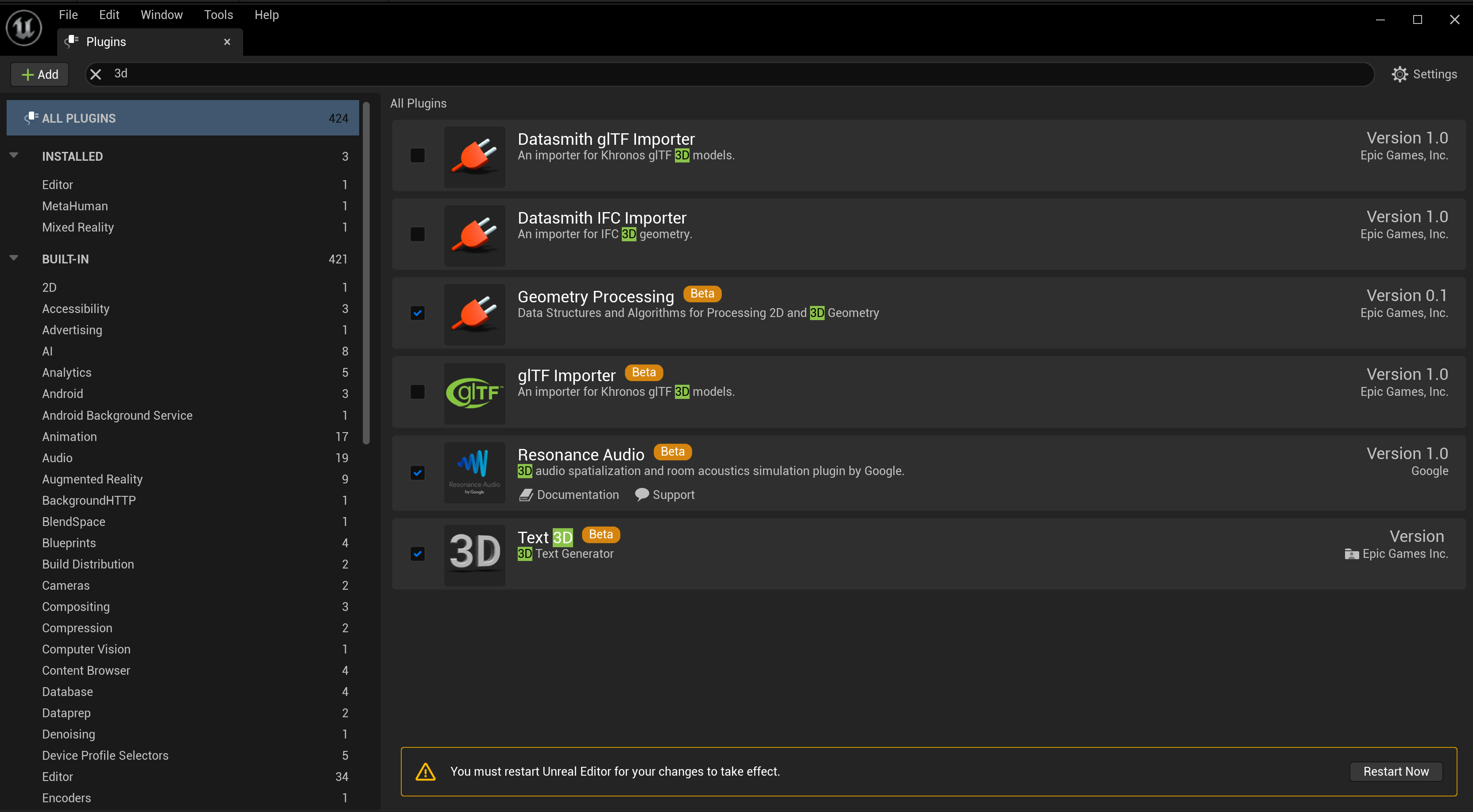 Unreal Editor will automatically reopen. Close the Plugins window.