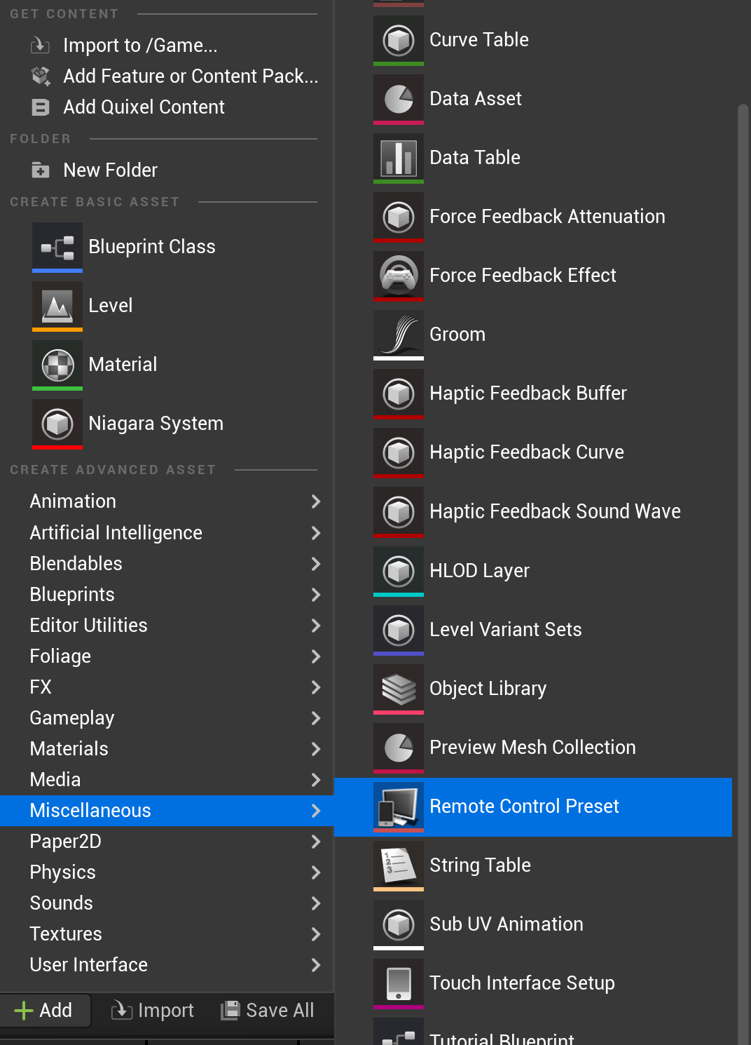 Double-click on the new Remote Control Preset in the Content Browser to open it.