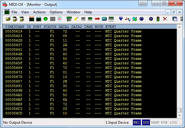 If there is a MIDI signal coming into the selected port you will see the data in the MIDI monitor window.