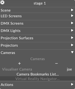 Cameras can be configured according to the properties of the real- world cameras they represent