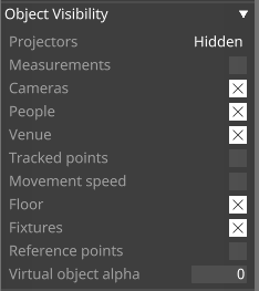 Hidden (default) - Tracked points from Blacktrax are not visible in the view.