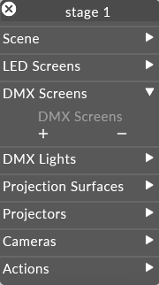 Click the + icon to open the DMXscreens manager.
