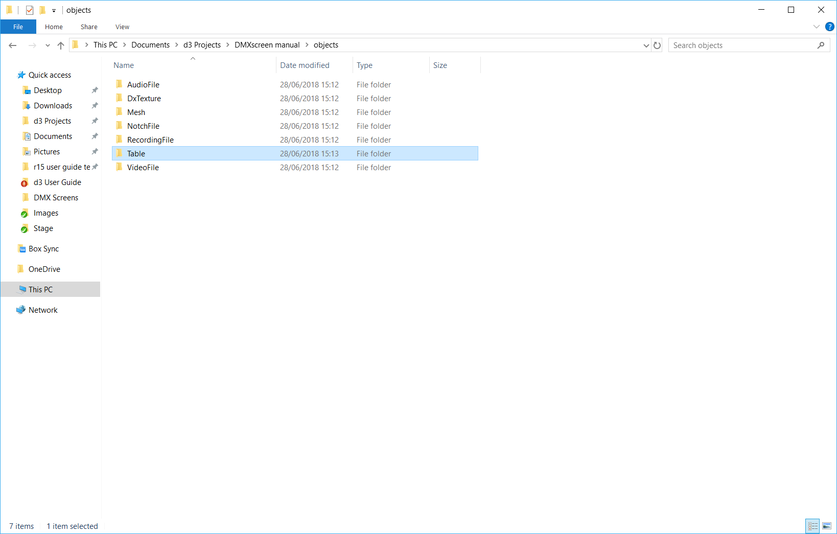 Create a new folder inside the objects folder of your project file, name this folder Table.