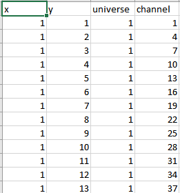 Now export the x, ,y, universe, channel information as a .csv file.