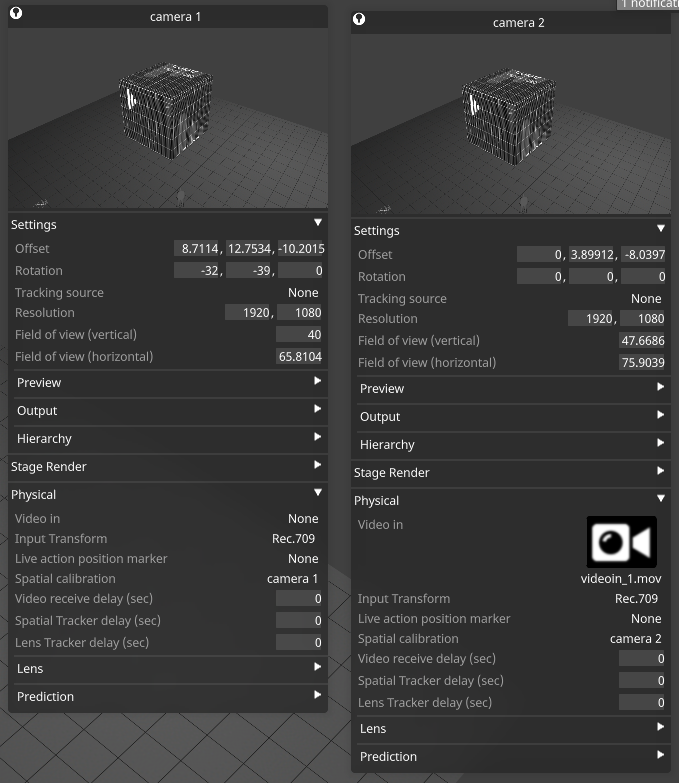 Next, open the properties editor for camera 2 (virtual camera), then follow these steps: