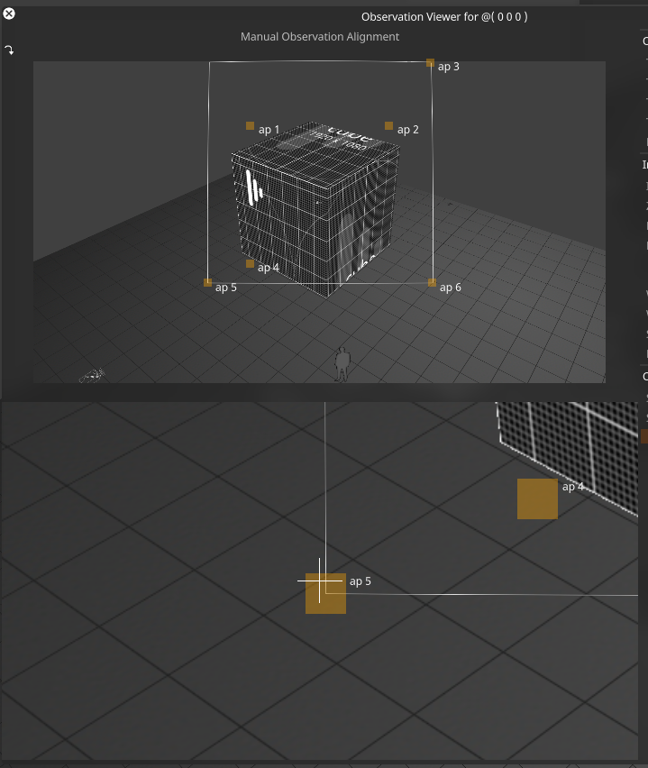 Click on each of the vertices of the wireframe object in the Observation Viewer (check the number of points needed message) and drag to the corresponding vertices of the alignment object